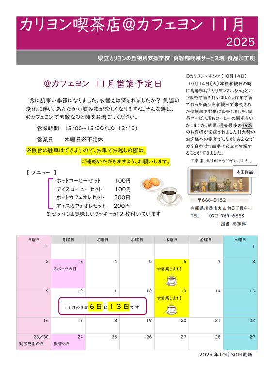 11月の営業日をお知らせします。ぜひお越しくださいませ。