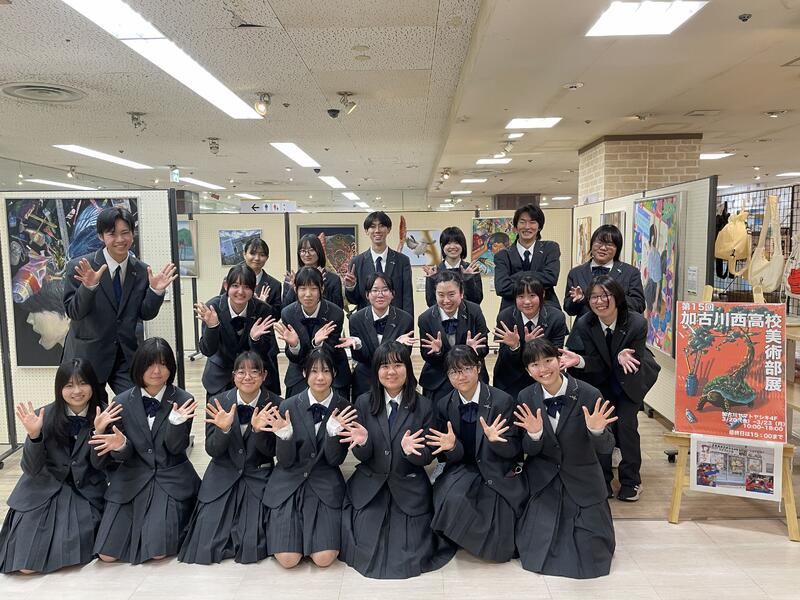 このたびは、第15回加古川西高等学校美術部作品展にご来場いただき、誠にありがとうございました。普段なかなか校外で作品を発表する機会のない本校美術部にとって、多くの方々に作品をご覧いただけたことは、非常に意義深い経験となりました。800人を超える多くの来場者の皆様に本校生徒の作品をご覧いただく貴重な機会となりました。