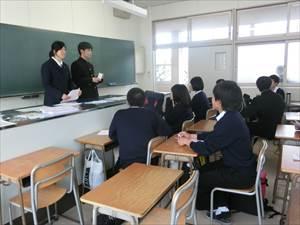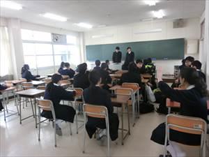3学期始業式、生徒会長から1月29日(月)から2月9日(金)までの12日間、「私服登校試行期間」を設けることを全校生徒に発表しました。