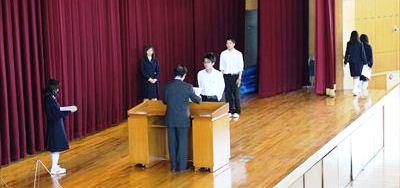 全校集会で 県総体東播地区大会の表彰伝達式がありました。