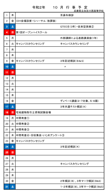 【訂正】10月行事予定