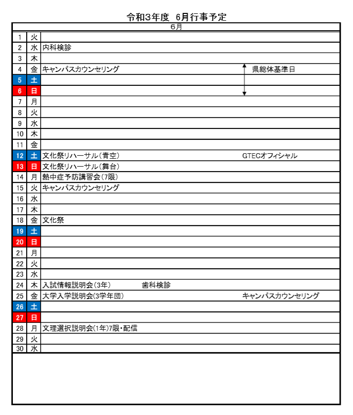 令和3年 6月行事予定