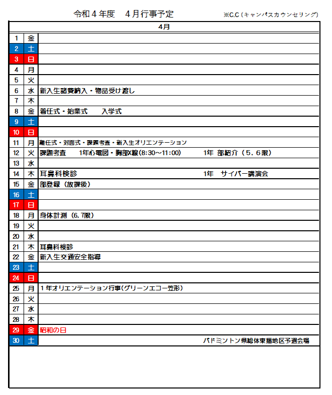 令和4年度 4月行事予定