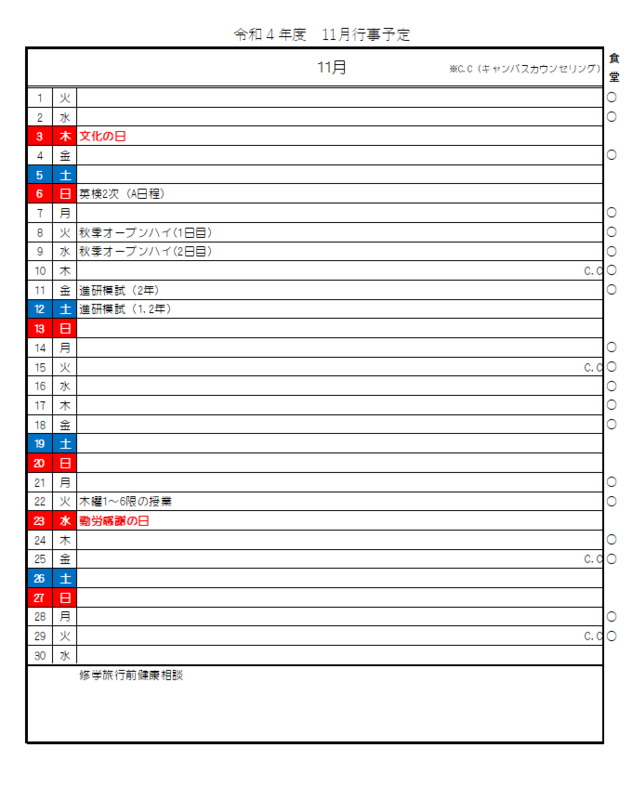 令和4年度 11月行事予定