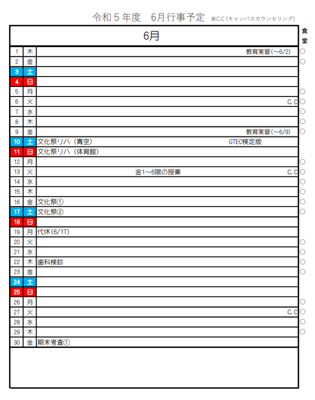 6月行事予定