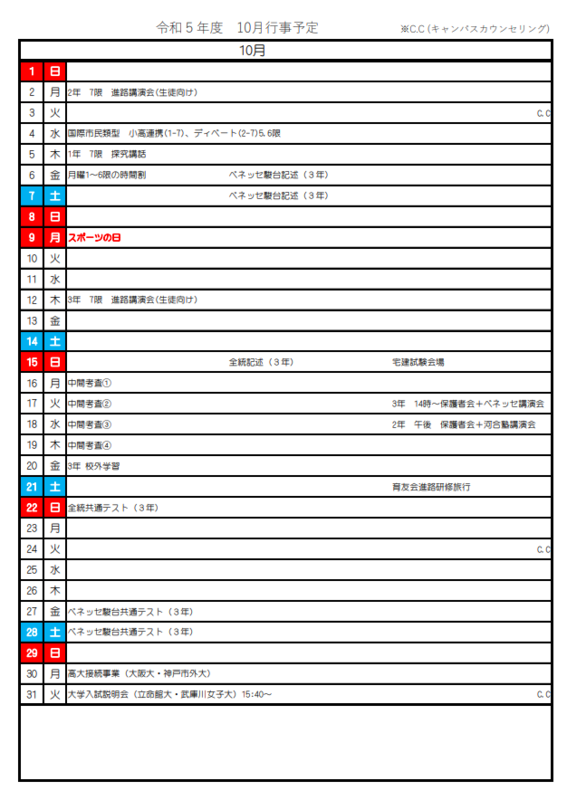 10月行事予定