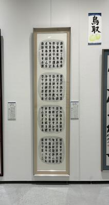 昨年度の県総合文化祭書道部門で近畿総文推薦賞を受賞した3年沖野さんが今回新たに制作した迫力ある作品が、鳥取県立美術館牽引ギャラリーに展示されました!