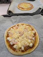 オープンハイスクールの初日は、バジルピザとシーフードピザを作りました。