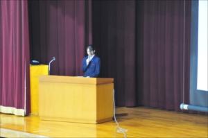 何回もリハーサルをしたのに、生徒会長の報告の前に、機械トラブルが起こりました。