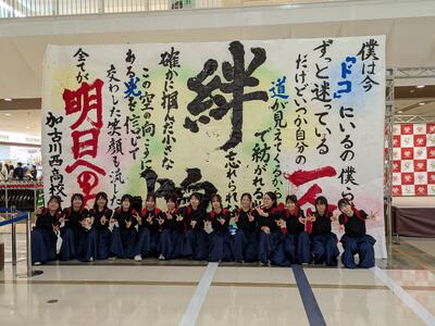 12月15日(日)ニッケパークタウンで行われたアオハル祭に書道部がパフォーマンスで参加しました。