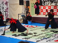 嵐の「Happiness」に合わせて部員8名で書道パフォーマンスを披露しました。