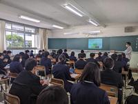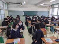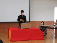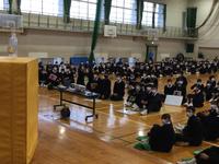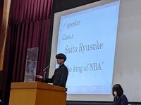 3月4日(金)1学年の英語スピーチコンテストが行われました。スピーチの内容は、「趣味」「尊敬する人」「日本の社会問題」「おすすめの観光スポット」の4つのテーマから1つを選び、12月から英語の授業の時間を使って準備を進めてきました。2月上旬にはクラス予選を行い、各クラス2名ずつ代表者を決定しました。14名の代表者のスピーチに続いて最後は、兵庫県の英語暗唱大会に出場した7組杉本奈々絵さんにスピーチを披露してもらいました。審査の結果、1位 村津颯真くん(7組)、2位 砂川真砂季さん(7組)、3位 福田亮介くん(2組)が選ばれました。おめでとう!! また放送部3名、国際市民類型(7組)の有志16名が、大会運営委員として働いてくれました。ありがとう。