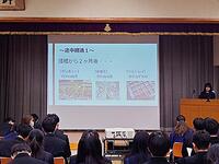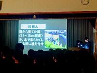 3学年が、昨年の4月から10か月程度かけて、授業で学習してきたことを軸に、農業に関する課題や問題、目標を自ら設定し、仮説を立て、計画的に実験や観察を行った記録や結果などをまとめました。本日はその研究発表会を同窓会館で1、2学年の同じ地域環境科の生徒の前で行いました。「景観班」、「獣害班」、「土地改良班」と大きく3つに分けて、それぞれ12の課題テーマについて、考察しながら、各々の解釈や結論を発表しました。発表後、生徒や先生からの質問は、また違った見方などの発見ができました。