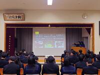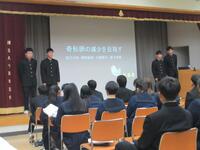 本日は2学期の終業式です。校長式辞、校歌斉唱の後に、9月に行われた「第13回兵庫県高等学校弓道新人大会 近的の部」、11月に開催された「第33回近畿高等学校弓道選抜大会」の報告会を行いました。その後、「全国農業高校お米甲子園2025」、写真部、弓道部、「播磨西高校読書感想文コンクール」、「上郡町人権文化推進協議会」、後期球技大会の優勝クラスの表彰伝達を行いました。
