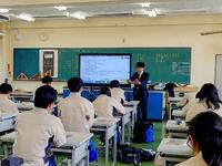 「近畿測量専門学校」から講師をお招きして、特別授業を受けました。地理空間情報技術や最新の測量のお話を、分かりやすくしていただきました。実際に学校周辺の航空写真にステレオコープを置いて覗くと、学校の教室棟などの平面写真が3Dのように見えて、とても面白いと思いました。また、実務や調査などのお話もしていただきました。測量士補に合格するためのアドバイスもいただきました。