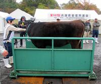 農業生産科で育てている和牛のお母さん牛から生まれた子牛を育て、今日、高校生が育てた牛の代表として、プロ農家の皆さんが丹精込めて育てた一流の和牛と一緒に「兵庫県畜産共進会」(牛の品評会)デビューすることができました。当日は非常に緊張する中、審査員に採点していただく貴重な体験ができ、結果は上位入選とはなりませんでしたが、日ごろ育てている牛たちがこうした大会でデビューできることが誇らしかったです。