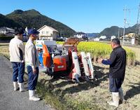 3学年農業生産科の課題研究で「稲作」を選択している生徒が、昨年度「あなたが選ぶ日本一おいしい米コンテスト」の高校生部門において上郡高校が「優秀金賞」を受賞した、品種「にこまる」の今年度最後の稲刈りをしました。初めてのコンバイン操作で、真剣に操作の説明を聞き、緊張しながら操作をしました。昨今、飼料をはじめ色々な物資の値上げで、上郡高校産のお米も値上げをせざるを得なくなりましたが、出来はいいと思います。機会があれば、ぜひご賞味ください。