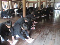 上郡町生涯学習支援センターで行われた「上郡文化協会発表会」では、上郡町内で活動されている華道や踊りなど数々の文化活動の発表が行われました。その活動発表の一環で、上郡町の茶道協会主催のお茶席も開かれており、上郡高校茶道部も参加させていただき、お点前を披露しました。多くのお客様の前でのお点前で緊張し、手元が震えましたが、無事に披露することができました。日頃の取り組みを披露でき、いい体験になりました。茶道部は、クリスマスにサンタの格好で清掃ボランティアも行います。応援お願いします。