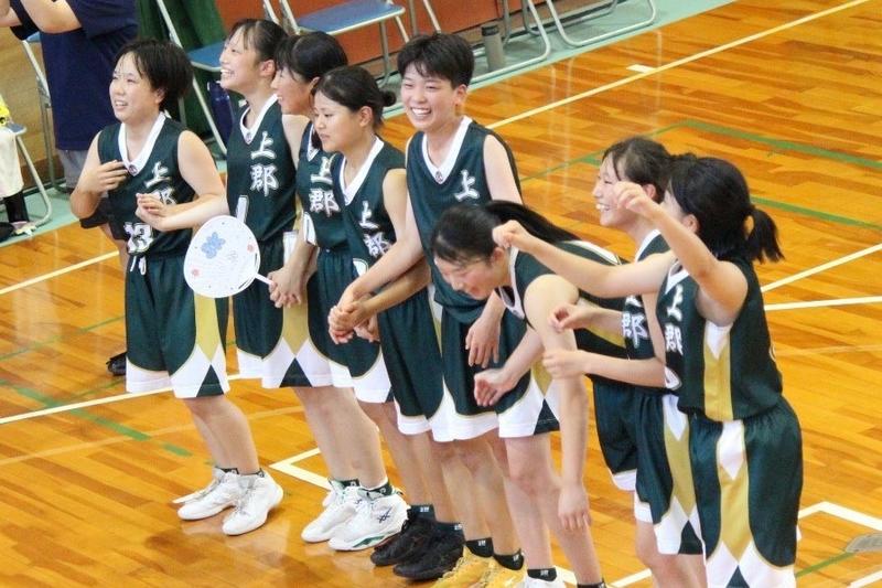 今大会は新入生も加入し、新上郡高校女子バスケット部で臨みましたが、Aリーグ全敗という苦しい大会になりました。連敗が続き苦しい中、支えてくれたのは、昨年度卒業したバスケ部の先輩からプレゼントしてもらった”日々笑進”の文字が書かれた団幕と、入部したてでベンチや応援席を盛り上げてくれたフレッシュな新入部員と、2.3年生のやってきたことを信じる心だったと思います。