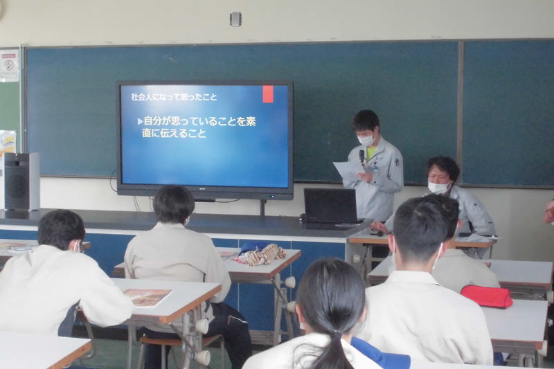 本校卒業生で入社1年目の先輩からは、高校生のうちにすべきことなどアドバイスも含めてお話していただきました。