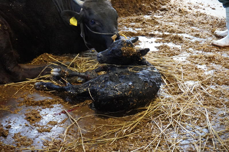 またまた子牛が生まれました。母牛は初産で少し苦労をしたようです。数人の生徒が立ち会えました。