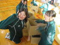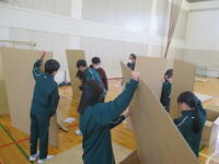 地震を想定した避難訓練と、防災に関する体験学習を行いました。避難訓練では開始から5分でグラウンドに集合完了することができました。防災に関する体験学習では、「避難所運営の経験のないあなたは、避難所運営を手伝いますか?」のようなケーススタディや、ペーパーパーテーションや段ボールベッドの作成、非常持出袋に関する講義などを行いました。