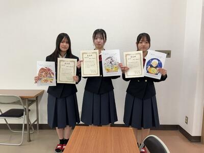 最優秀賞に米田茉弥(中央)さん、優秀賞に平尾優花(右)さん、横見優衣(左)さんが選ばれました。