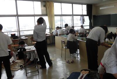 読み手は学年の先生方、及び有志の先生方が交代で行いました。生徒たちは自己紹介をして、良いプレーにはお互いに拍手をしながら、楽しく百人一首の世界を楽しんでいるようでした。暗記をし練習してきた成果は発揮できましたか。