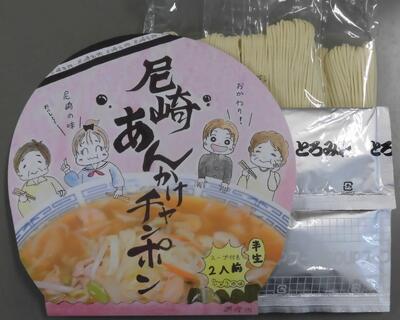 商品化された米田茉弥さん(最優秀賞)デザインの尼崎あんかけチャンポン