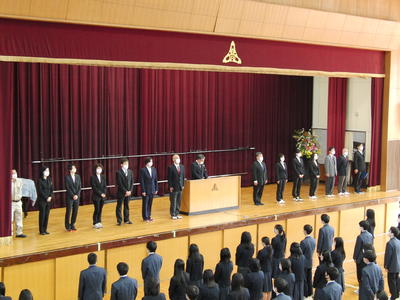 本日体育館で新着任の先生方の着任式と1学期始業式が行われました。