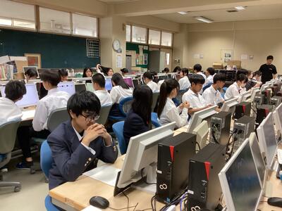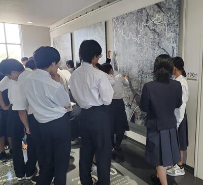 最初は、学校探検をして校訓碑等を見ました。その後は教室に戻り地域科学探究科の成立についての話を聞きました。