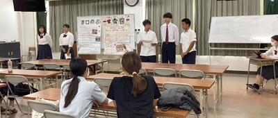 今回のオープンハイスクールでは、今年度入学した地域科学探究科の生徒により学科の説明をおこないました。