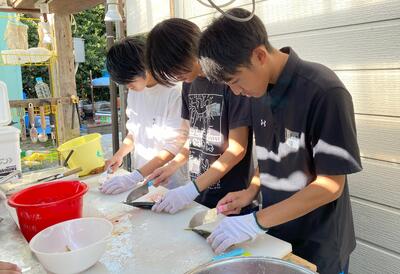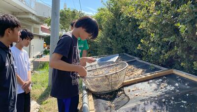午前中は、魚釣り体験をおこないました。午後は、クルーズ体験で尼崎運河などを見学しました。その後、魚釣り体験で釣ってきた魚をさばきフライにして食べました。また、内臓や骨など食べれないところを使った肥料づくりにも参加しました。
