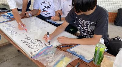 最後に、ワークショップ参加校で班に分かれ、「尼崎の海での地域課題解決の活動」について気づきを話し合い、発表をしました。