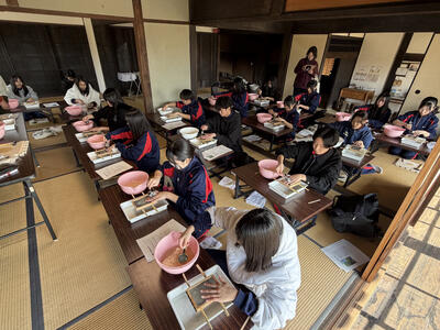 3月9日(月)1~4限目に、2年7組教育と絆コースの生徒37名がインターピープルを行いました。 本校では県立高校ふるさと共創プロジェクトの一環として、世代を超えた地域の人々とのふれあいを通して、生徒の健全な心の育成を図る目的で、地域文化交流行事として実施しました。