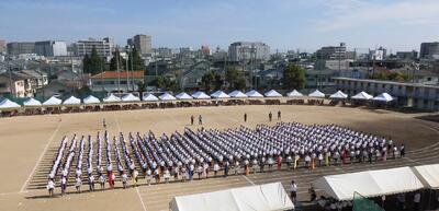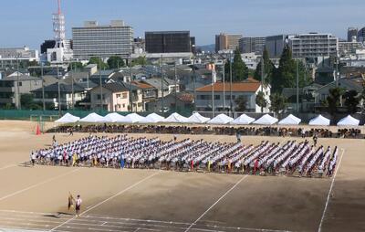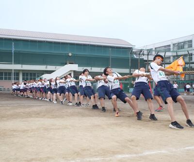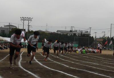 10月2日(木)体育大会予行、10月3日(金)体育大会という日程で開催されました。当日は雨が心配されましたが、何とか無事に全種目実施出来ました。事前の準備を含め、生徒の頑張りと笑顔が目立つ大会になりました。