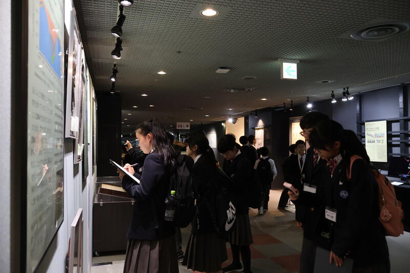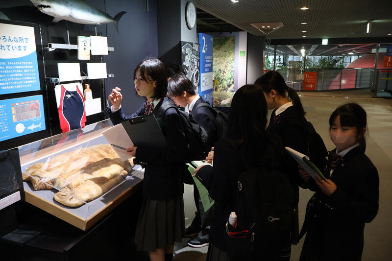 人と自然の博物館に到着しました。赤澤所長のお話を聞き、館内の見学をしました。動物の剥製や化石などたくさんの展示物と出合うことができました。昼食後、博物館の先生方の講座を受けます。