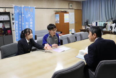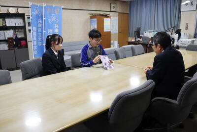 文化祭の準備にあたり、生徒会長と副会長が校長室を訪れ、準備の進捗や当日に向けた思いを話してくれました。