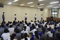 さて、夏休み前最後の登校日である7月20日(水)の3時間目に行われた全校集会(本校は2学期制のため「終業式」ではありません)では、武尾総長先生と生徒指導担当の大槻先生がお話をし、また、部活動などで優秀な成績を収めた生徒の表彰を行いました。