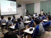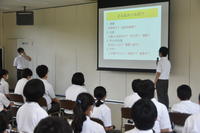 7月に行われた1回目の授業では、同大学の専任講師である平田知之先生からディベートで注意すべきことや話の組み立て方を生徒たちにご指導していただき、2回目の今回は生徒たちが平田先生の講義を受けて、前期間、取り組んできたディベートの集大成の発表としての授業が行われました。
