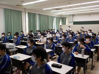 その後、生徒指導担当の先生方からは、後期の学校生活における感染症対策について詳しいお話がありました。緊急事態宣言は解除になりますが、より一層の対策が必要であることがよく分かりました。
