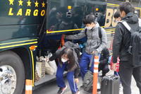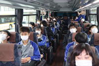 荷物を受け取り、2台のバスに乗り込んで、ハイブリッドロケットエンジンの研究開発をしている植松電機に向けて出発です。