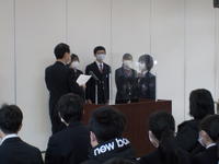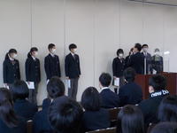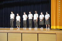 密集を避けるため、儀式はWEB開催でした。中学生はそれぞれのホームルーム教室のホワイドボードに映し出された画面を見ながら参加しました。