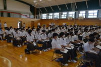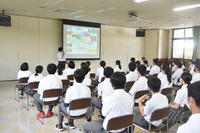 植松努社長から、どうせ無理という思いを捨てて、夢を持つ大切さや、好きなことをやり続ける人生を送って欲しいとの、自身の経験を元に、ロケットを諦めずに今があることを話して頂き、生徒は熱心に聞き入っていました。
