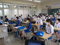 長期休業が終了し、附属中にも活気が戻ってきました。夏休み中もプロジェクト学習や学習会、部活動などで登校する生徒がいましたが、それでも授業がある日の活気には敵いません。本日、生徒たちは2時間目から6時間目まで5教科の課題考査に取り組みます。休み時間は、夏休み中の話を友人と共有しつつ、試験勉強に励んでいました。