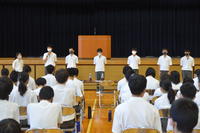 7月20日中高合同全校集会において、6月に行われた赤穂郡大会、7月に行われた西播総体の表彰を行いました。