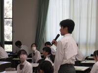 1回目の授業では、勉強と研究の違いについての話でした。2年生は今年からプロジェクト学習が始まったこともあり、研究で大事なことを3つ教えてもらいました。①過去の記録を詳しく調べること②多くの人と相談し、互いに協力すること③分かったことを、何かの形にまとめること。この3つ以外にも大事なことをたくさん教えていただきました。