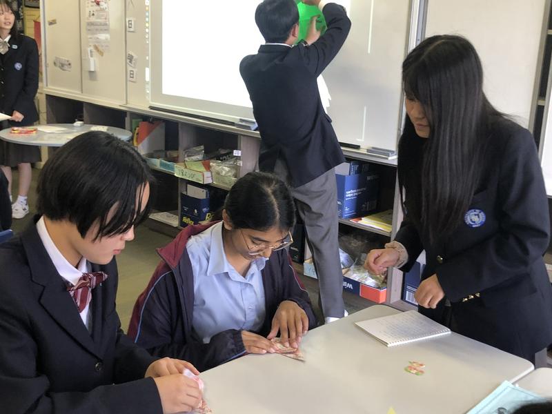 3〜5時間目は8年生、9年生との交流でした。日本語、英語の両方を使いながら活動を進めていきます。