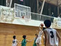 西々播大会では、一回戦Cリーグの相生産業との試合でした。出だし、相手に連続得点を許すなど、重いスタートとなりましたが、効果的なスリーポイントやゴール下での1対1で得点を重ねることができました。前半は、相手の得点源を止めることに苦戦しましたが、コミニケションを取ることで徐々に対応できはじめ流れを掴むことができ前半を31-26で折り返しました。