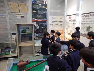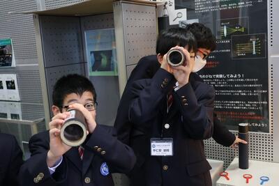 午前中は学校にて河合総長先生の工学部での研究を紹介していただきました。その後、西はりま天文台へ移動し、光と星について学びます。
